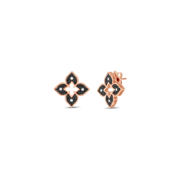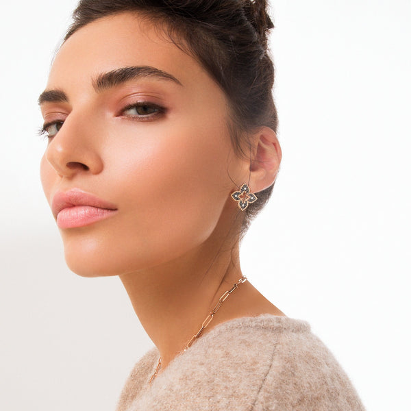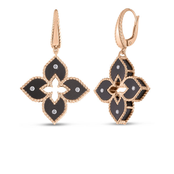 18K Rose Gold Venetian Princess Small Gray Titanium And Diamond Flower Dangle Earrings