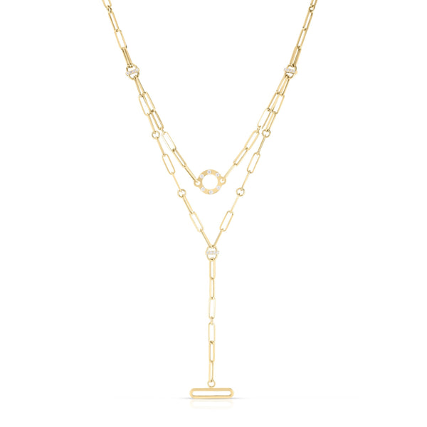 18K Yellow/White Gold Domino Diamond Accent Extended Chain