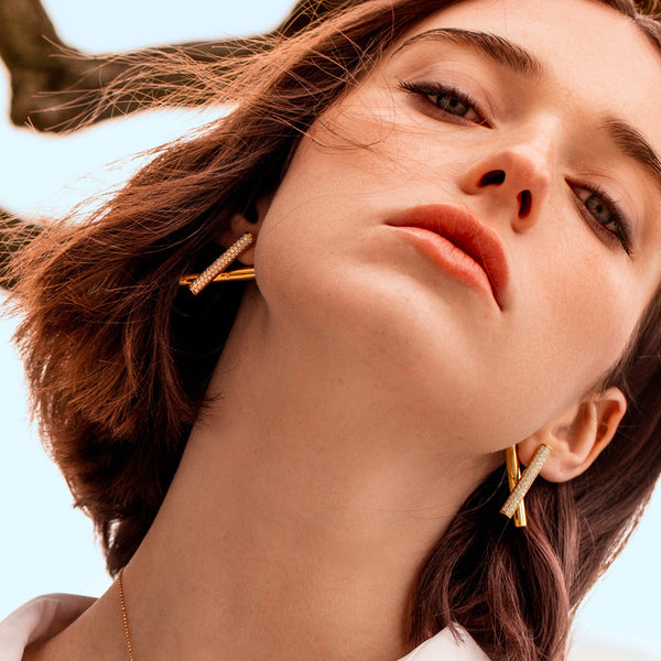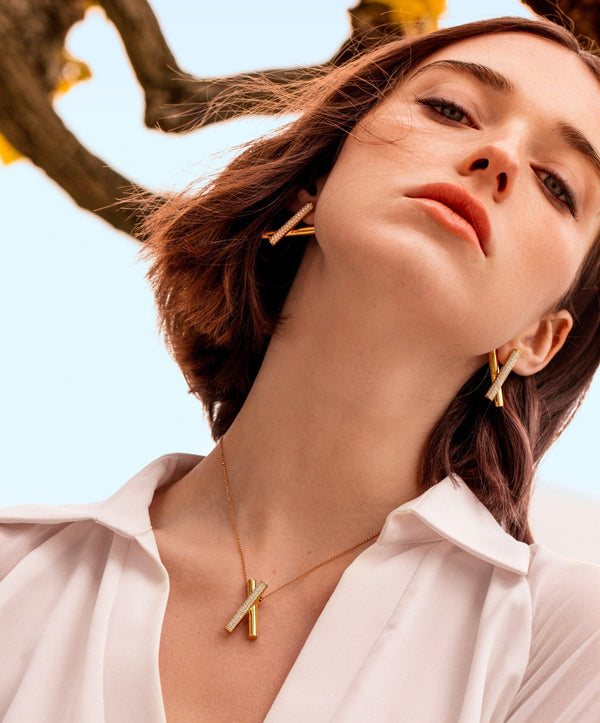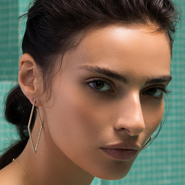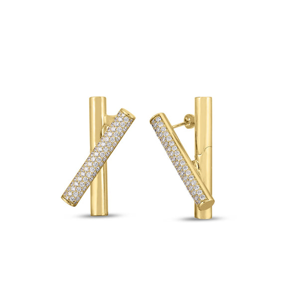 18K Yellow Gold Domino Diamond Crossover Earrings