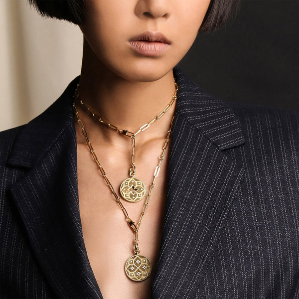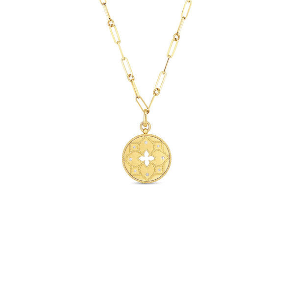 18K Venetian Princess Satin Medallion With Flower Cutout & Diamond Accent On Chain