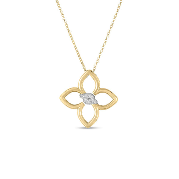 18K Yellow/White Gold Cialoma Medium Diamond Flower Necklace
