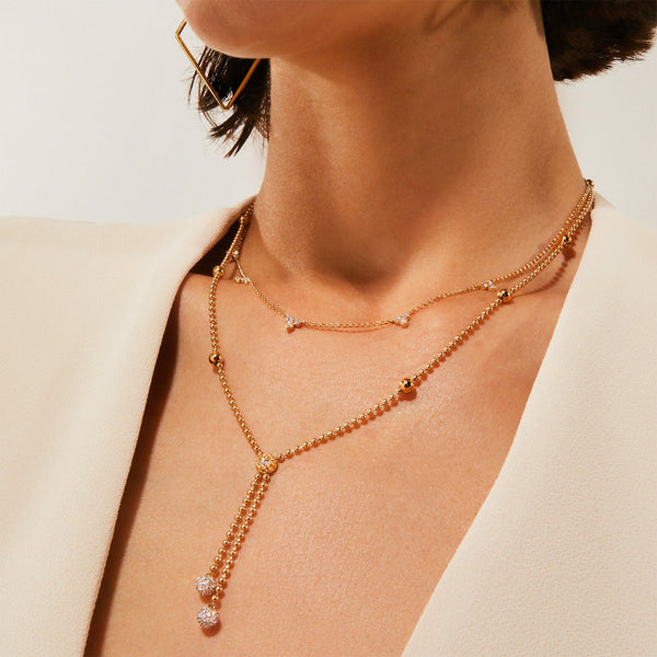 18K Yellow Gold Domino Diamond Crossover Necklace
