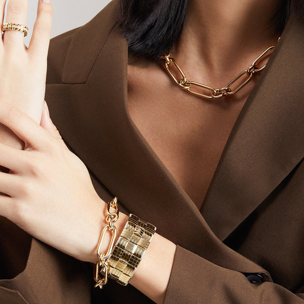 18K Yellow Designer Gold Oval & Round Link Bracelet
