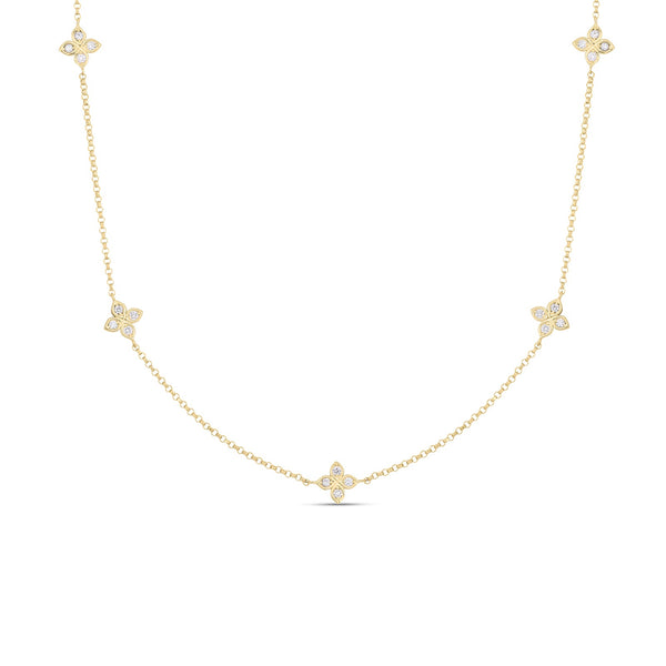 18K Yellow Gold Love By The Inch 5 Station Flower Necklace
