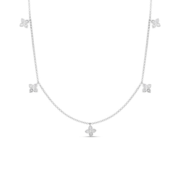 18K White Gold Love By The Inch Dangling 5 Station Flower Necklace
