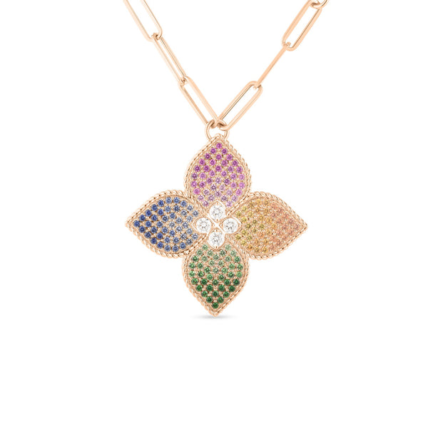 18K ROSE GOLD VENETIAN PRINCESS DIAMOND & MIXED SAPPHIRE FLOWER LONG NECKLACE