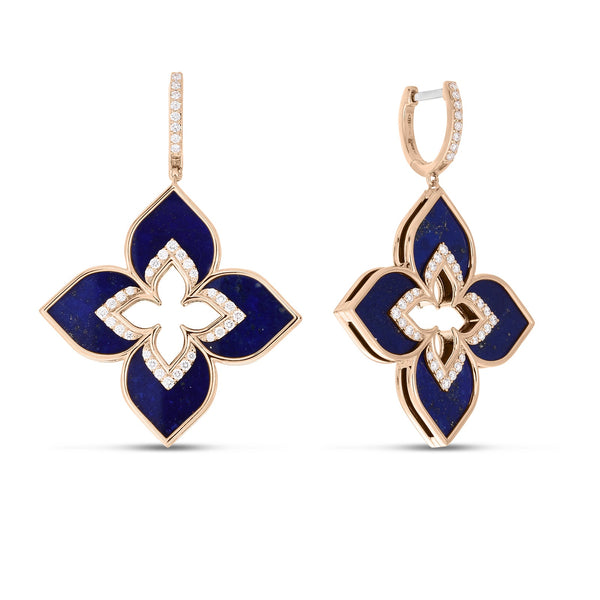 18K Rose Gold Venetian Princess Large Lapis/diamond Frame Drop Earrings