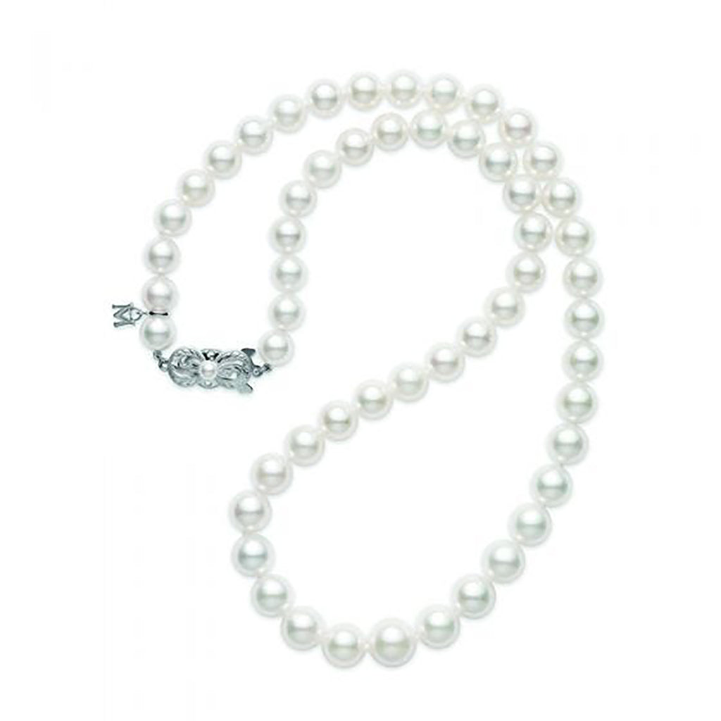 Each of Mikimoto's cultured pearl strands are a work of art born from the mystery of the sea. Creation of these strands requires incredible skill, judgment and craftsmanship. The journey begins with a rigorous selection process, culling the very best quality pearls. This 18” Akoya cultured pearl strand features 9x7mm Akoya cultured pearls with a Mikimoto signature clasp in 18K white gold.