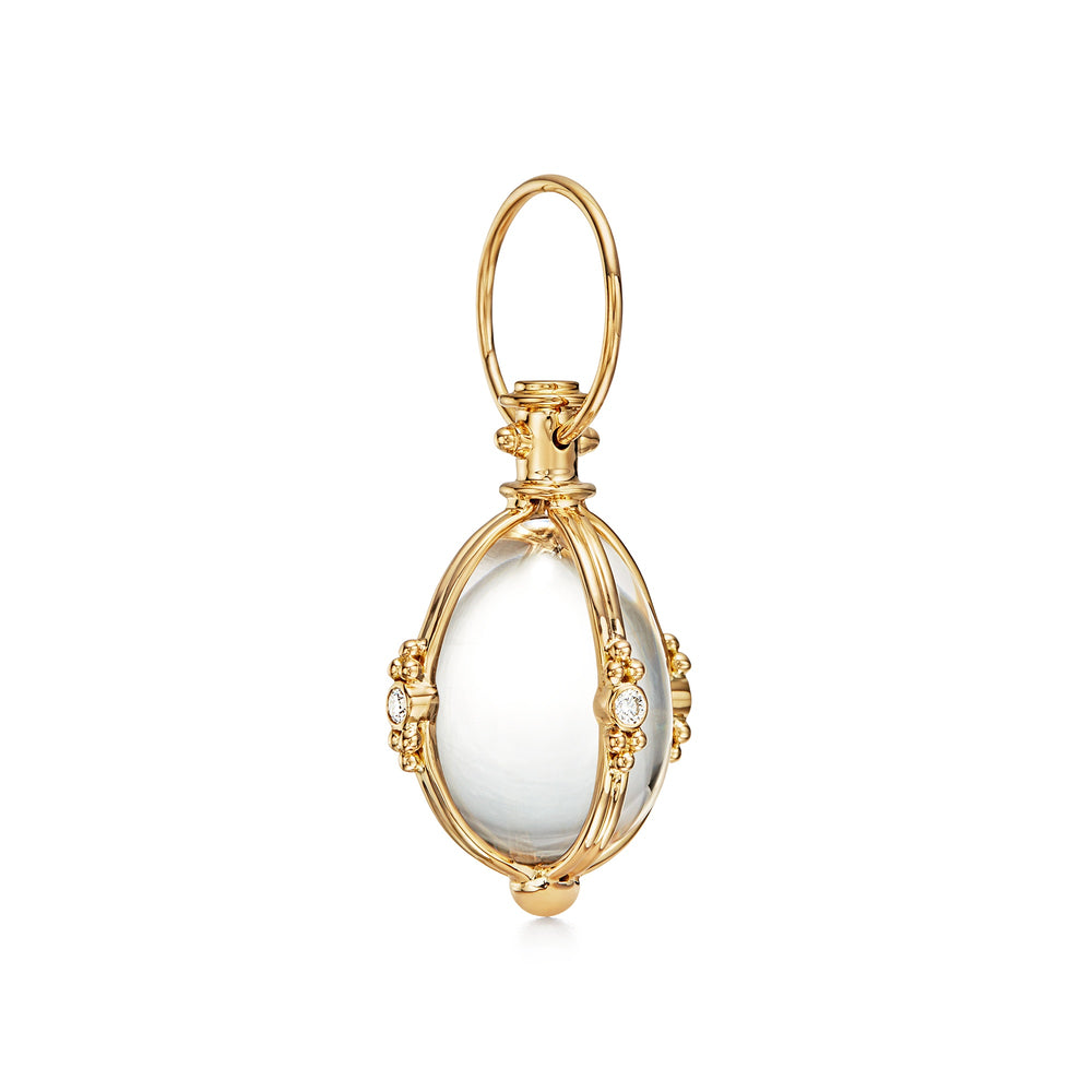 Sleek and simple, with just a little bit of glamour, this 18K Diamond Classic Amulet features a diamond and triple gold granulation on each of its four sides. The rock crystal, cut and polished into an elegant oval, remains the centerpiece of this timeless look and is a Temple St Clair signature. Choose from multiple sizes.
