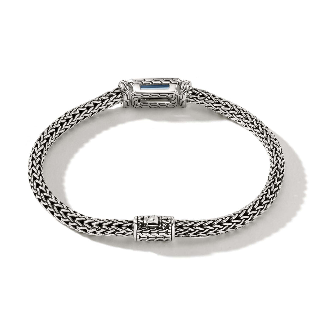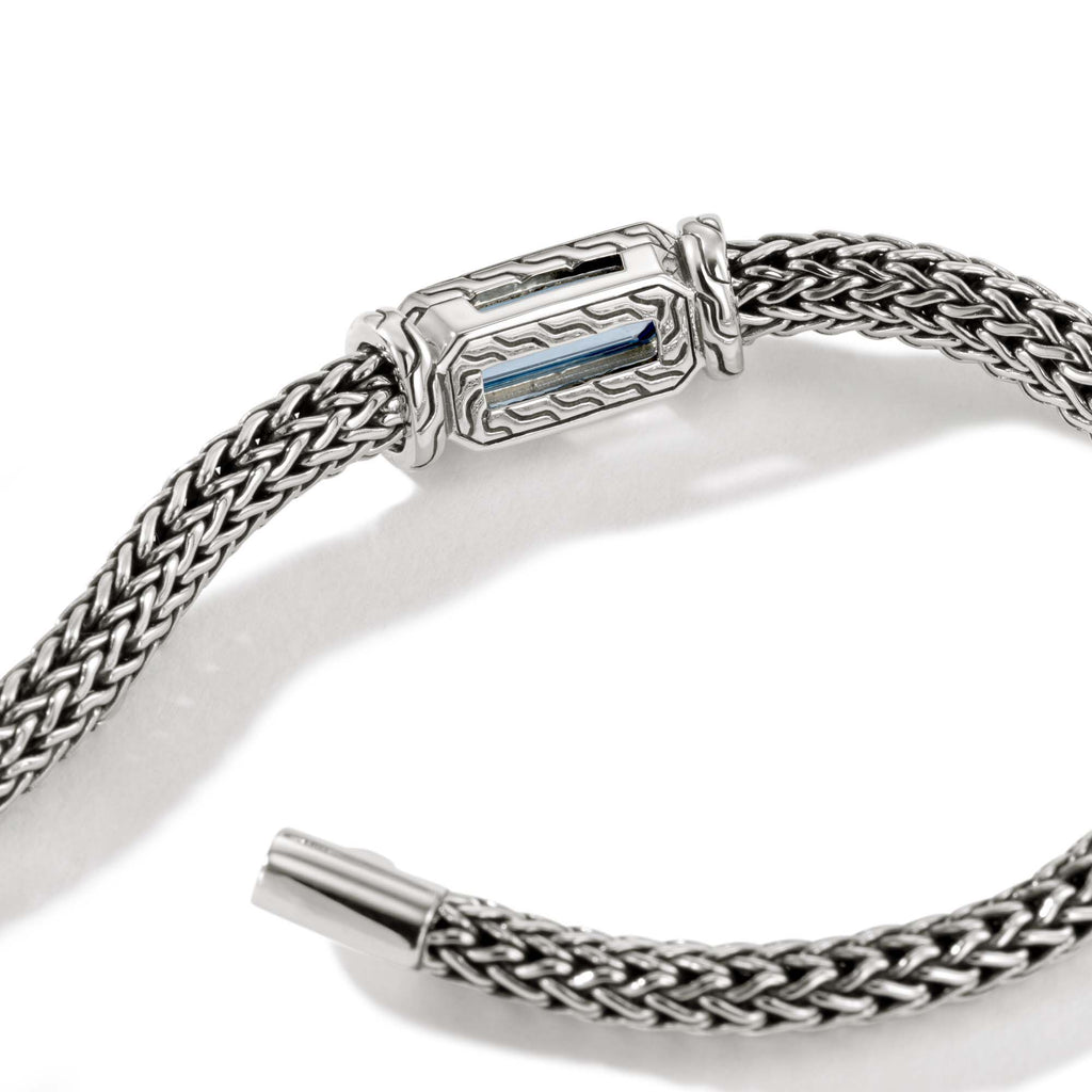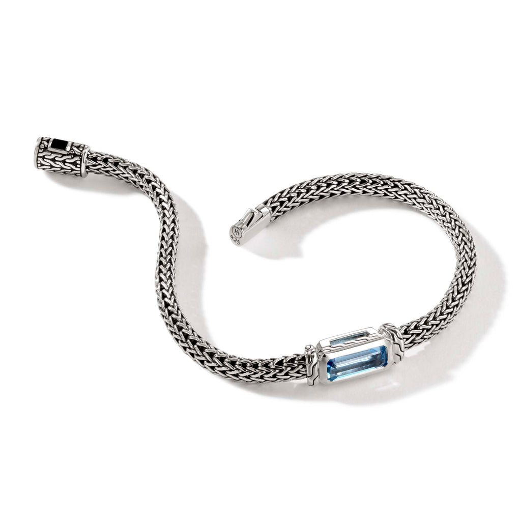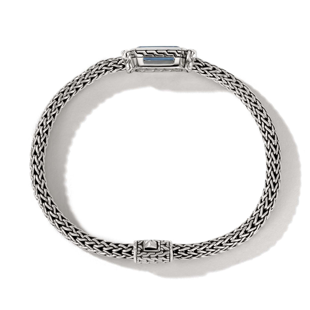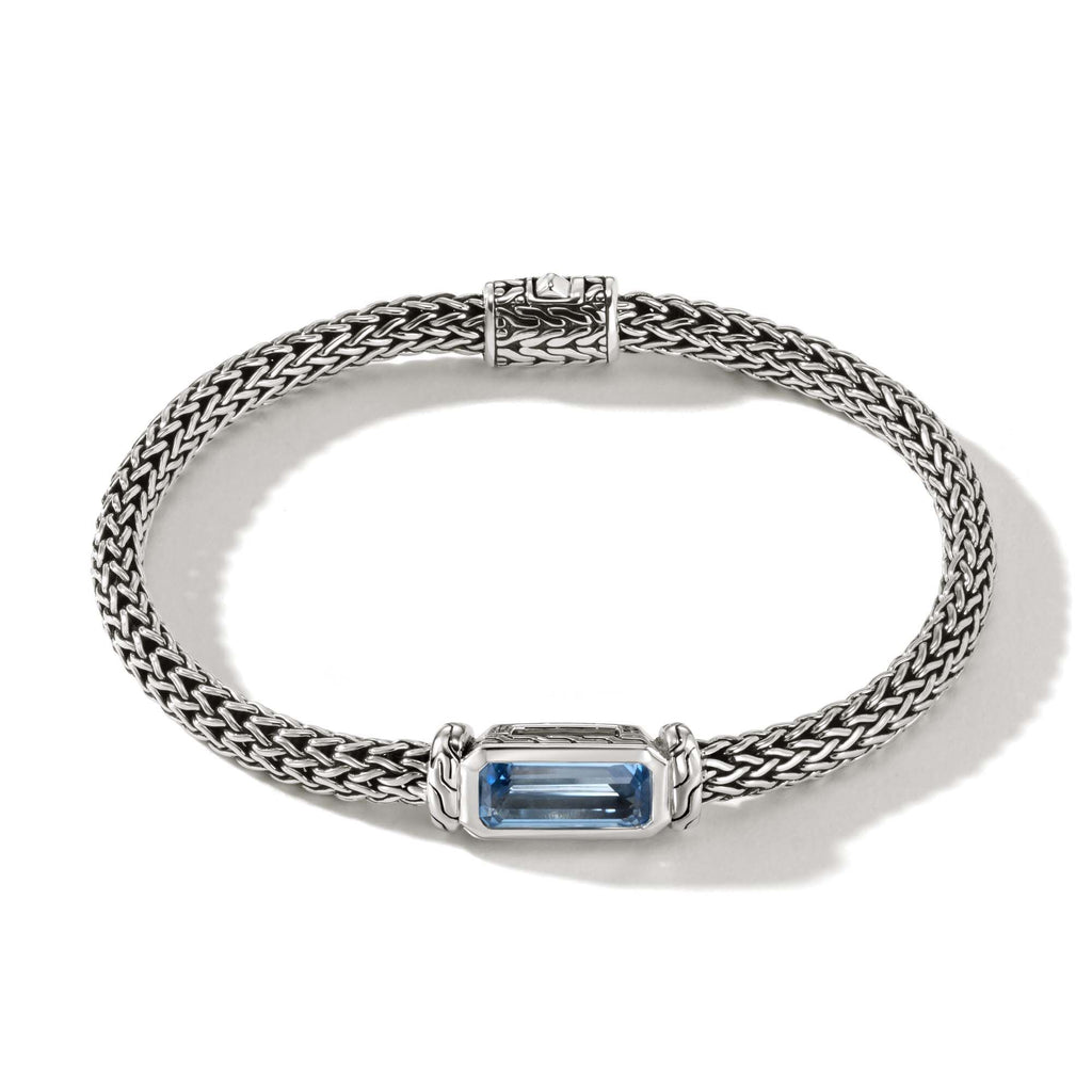 Classic Chain Silver 5mm Extra Small Chain Bracelet with Pusher Clasp with 12x5mm Aquamarine, Size UM