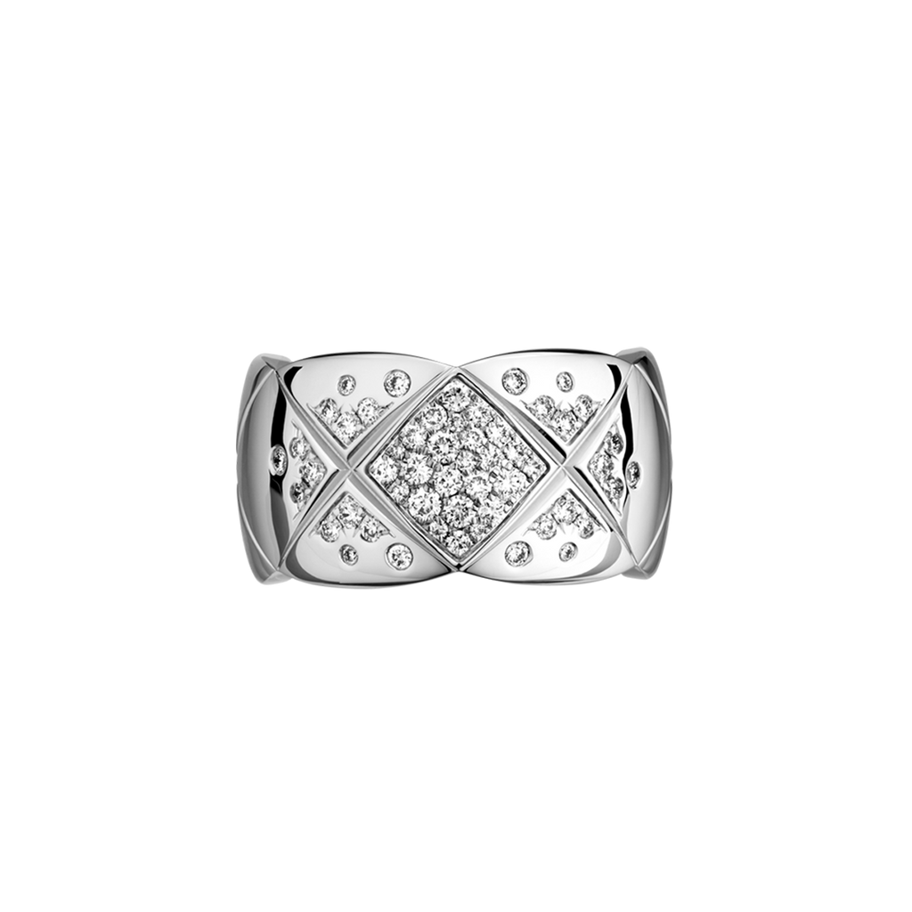 Quilted motif, large version, 18K white gold, diamonds
