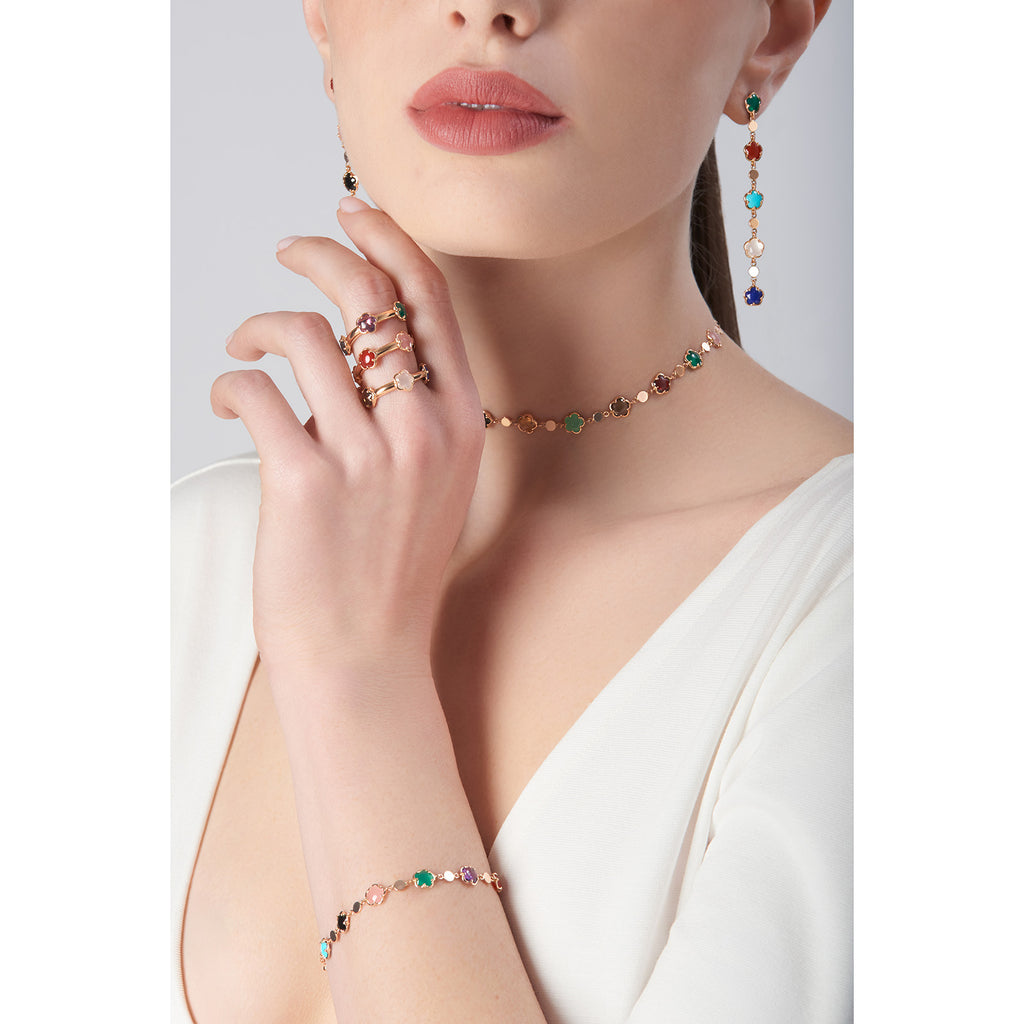 Pendant Earrings in 18k Rose Gold with Green Agate, Red Carnelian, Onyx, White Moonstone, Pink Chalcedony, Amethyst, Lapis Lazuli, Turquoise and White Diamonds.