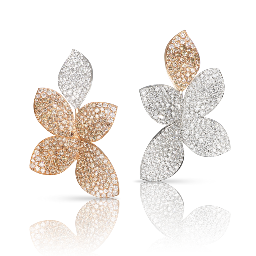 Five Leaves Earrings in 18k Rose and White Gold with White and Champagne Diamonds.