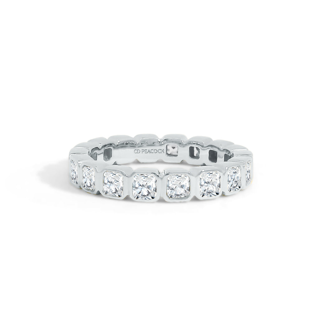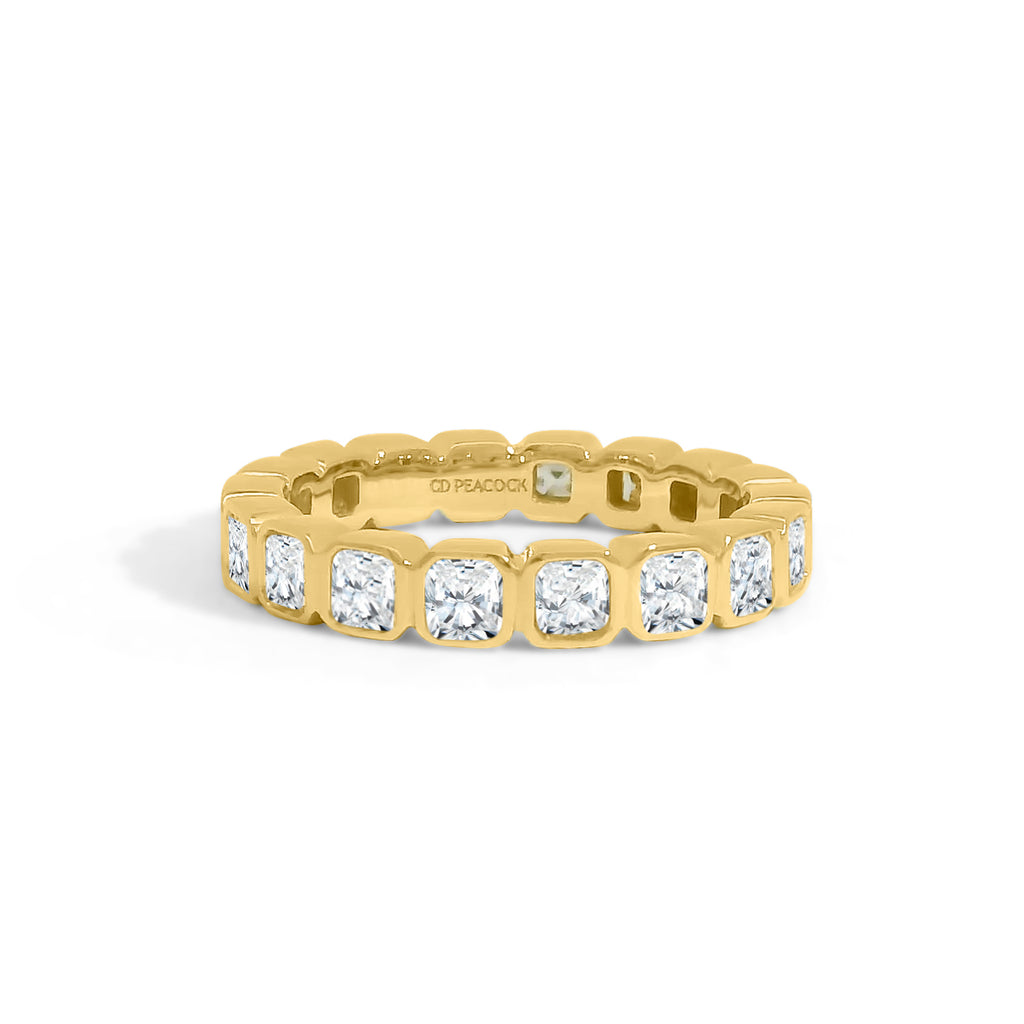 Diamond eternity band with bezel set asscher cut diamonds from the Gold Coast collection. Diamonds equal 1.55 CT Diamond Eternity Band GH/SI.