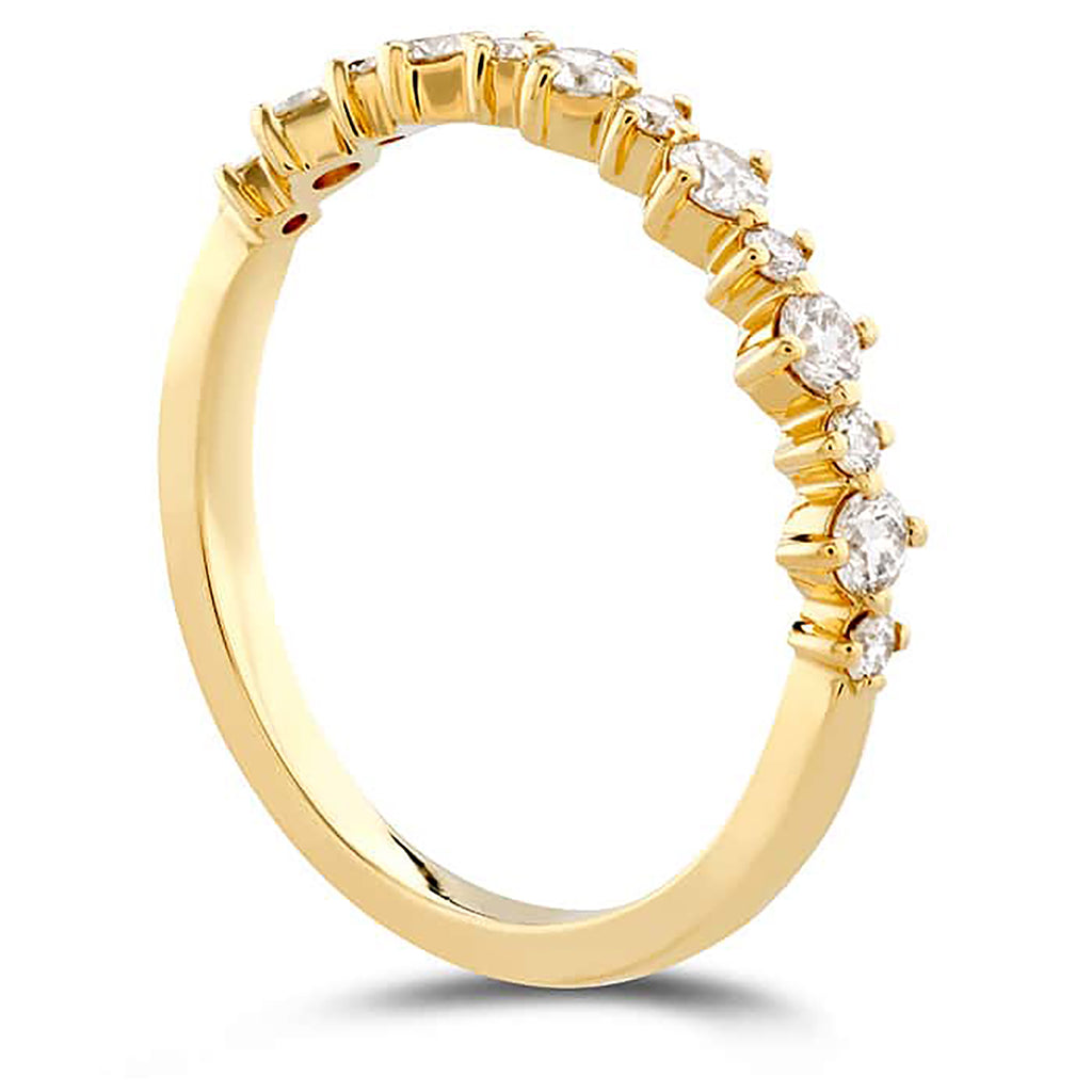 Stones of alternating sizes are lined up in a single-prong setting, creating an oh-so chic silhouette. Whether you wear it alone or pair it with other rings, this design packs a unique punch.