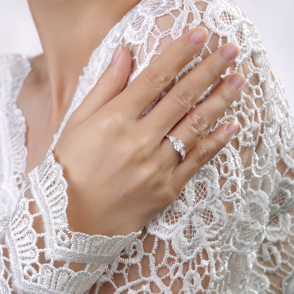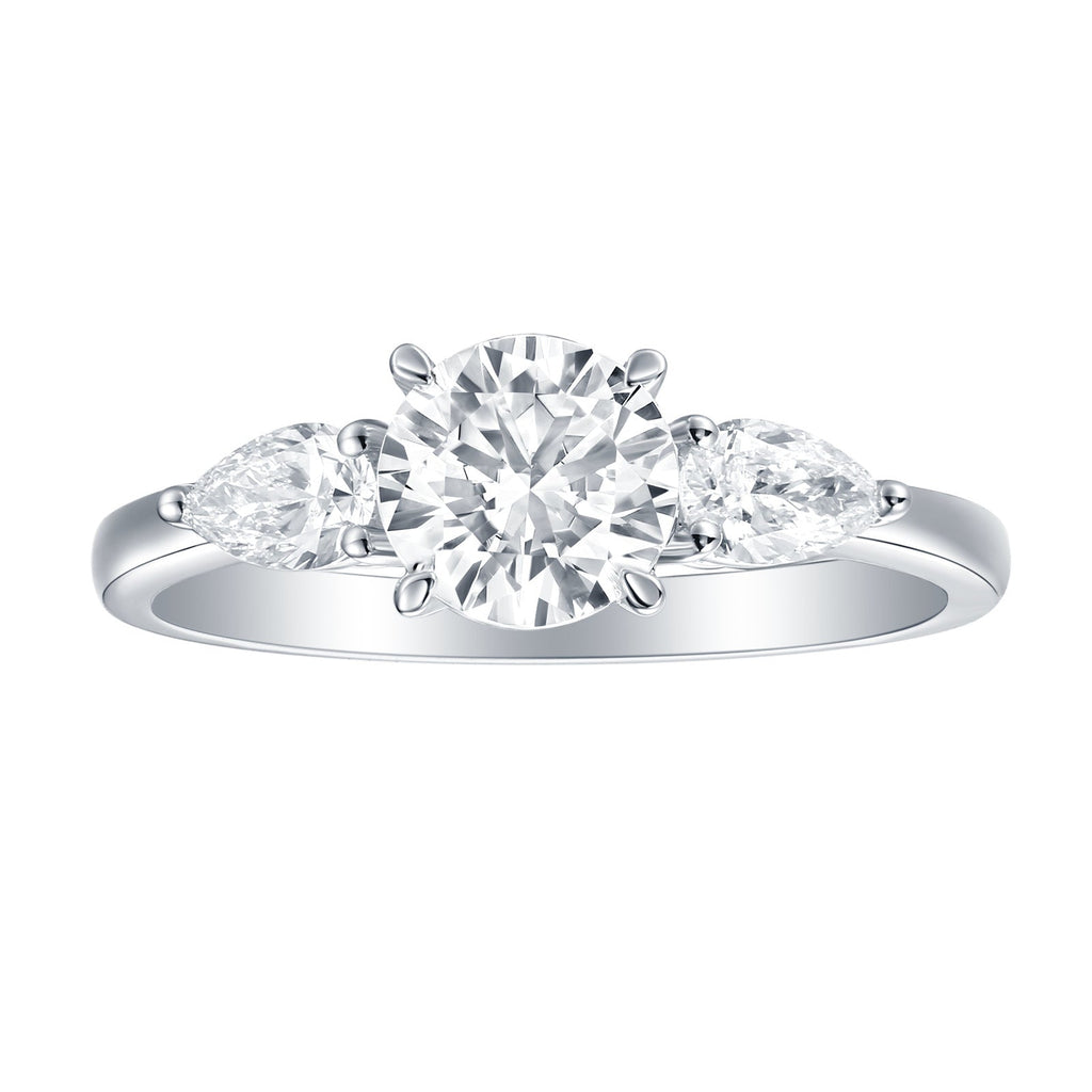 Classic 14K Wedding Round three-stone ring in 1.00ct center lab grown diamonds and 1.45ct total carat weight.