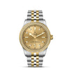 Screw-down winding crown with the TUDOR rose in relief. Steel covered by a 0.1mm yellow gold cap