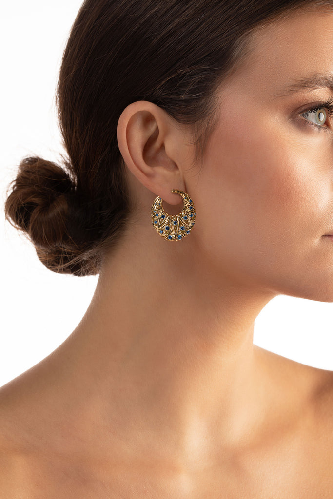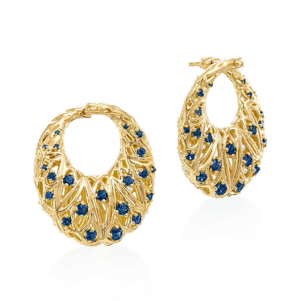 A reversible bypass design with 1.52 carats of F/VS diamonds and 1.70 carats of teal sapphires in 18K yellow gold, offering both elegance and versatility.