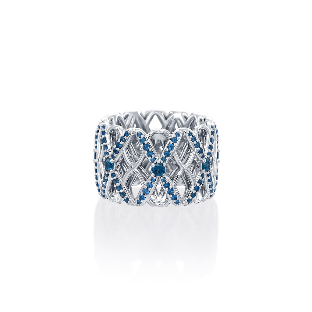 A striking signet ring featuring 1.92 carats of teal sapphires set in 18K white gold, designed for an elegant statement.