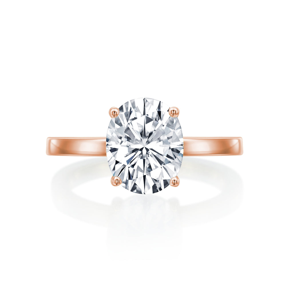 SKU RN-SOL-OS-YG-14-4Oval center solitaire with V hidden halo wedding ring from the River North collection.  Diamonds equal .05ctw GH/SI.